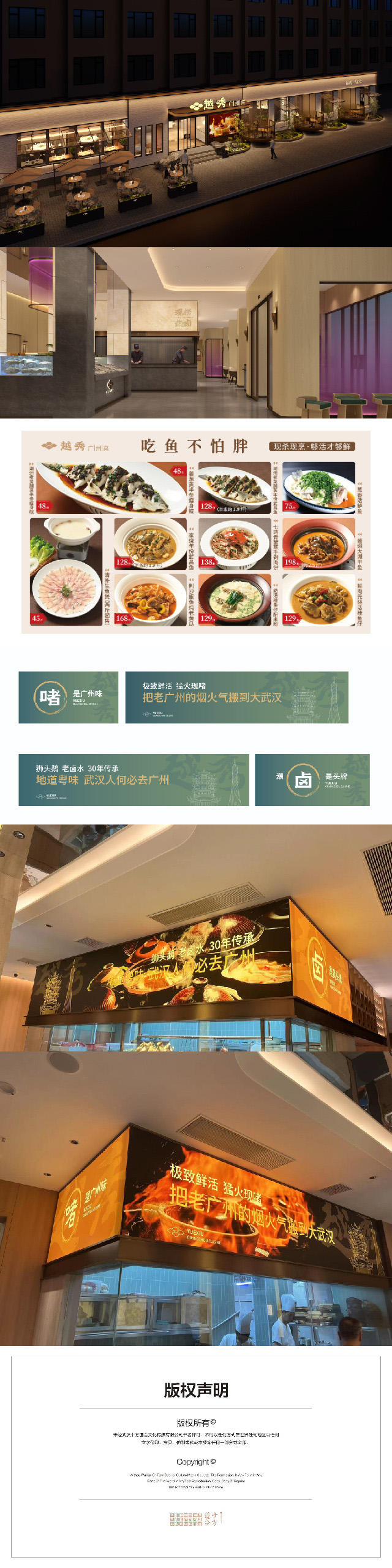 项目介绍/Project:越秀.广州菜精致餐厅位于武汉市江岸区云林街台北二路,该餐厅始创于1997年,主营粤菜,湖北菜及潮汕卤水!经营近三十年,为武汉老字号,餐厅于2025年全新重装开业,环境时尚大气,适合商务宴请、家庭聚会等多种用餐场景。